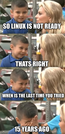 Different definitions of ‘ready’ I guess. Been using primarily Linux for years, so it was ‘ready’ for me back then - but nothing has changed in the mean time that would change my recommendation for people who just want a boring stable computer.