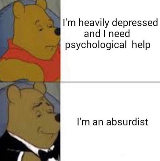 I mean, Absurdism can (to a degree) take you from depressed to content. It obviously can’t help with the actual chemical imbalance sort of depression that drugs can fix, but it sure can help with that good ol’ existential dread.