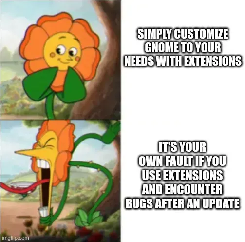 No, either gnome should actually support a lot of these things people are such with extensions for it or at least provide some semblance of compatibility if they are so insistent that extensions are the only way to get some of these customizations.