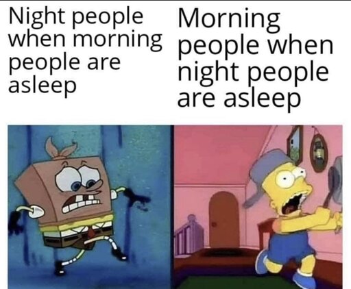 Lmao, 100%. I swear most folks I know believe being a night owl is simply a lack of self control, or they have a screw loose