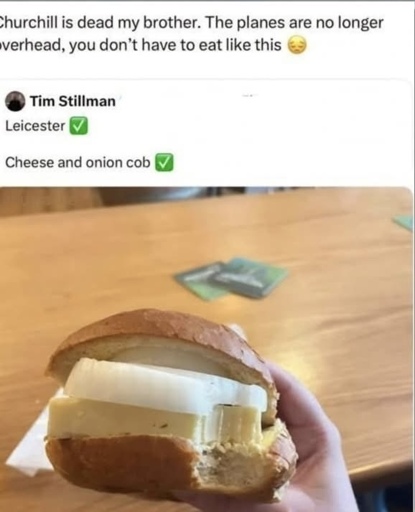 Come on now, OP. What ever other criticism you may level at that sandwich, you can’t say that cheese and raw onion is lacking in flavour.