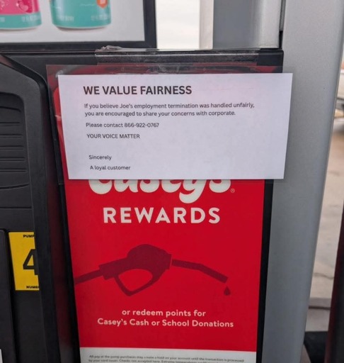 Casey’s is actually one of the few ethical petrol stations and will actually listen to customer feedback.