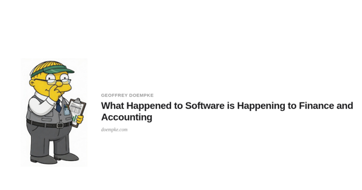 arrow-up1-2arrow-down1external-linkWhat Happened to Software Is Happening to Finance and Accountingdoempke.comRSS Bot@lemmy.bestiver.seMB to Hacker News@lemmy.bestiver.seEnglish · 1 month agomessage-square1linkfedilinkfile-text