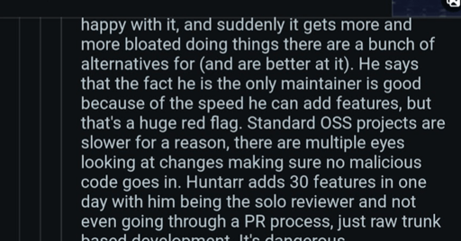 This is what good distros do, well some of them, I don’t think low touch repos like AUR/Homebrew/PPA’s would catch this, but I doubt huntarr will ever make it to Debian.