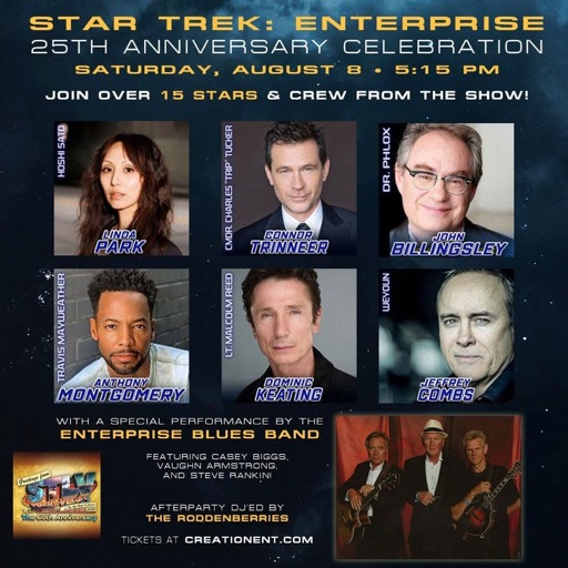 Mingle with over 15 stars and crew of the show, including Linda Park, Connor Trinneer, Dominic Keating, Anthony Montgomery, John Billingsley, and Jeffrey Combs, all while enjoying a live performance by the Enterprise Blues Band featuring Casey Biggs, Vaughn Armstrong, and Steve Rankin.