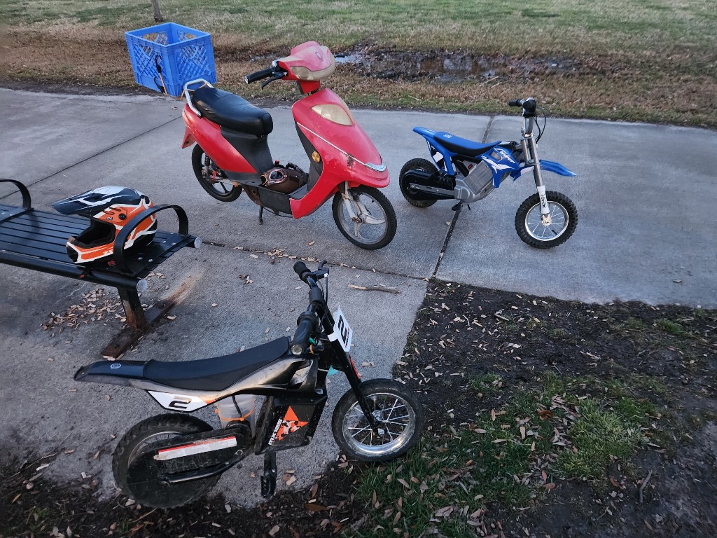 Ebike gang rise up. Overvolted Walmart specials and a refurbished electric scooter from 2008 with lithium upgrade and a brushless hub motor.