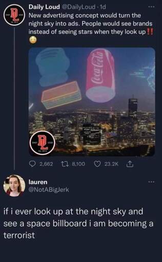 If the trend caught on at a large enough scale to just mildly vandalize space-billboard products, that shit would stop in a hurry.
