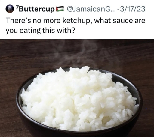 As an Asian this whole thread feels so weird and I can’t tell if people actually eat rice with ketchup or they are tricking me into trying an abomination